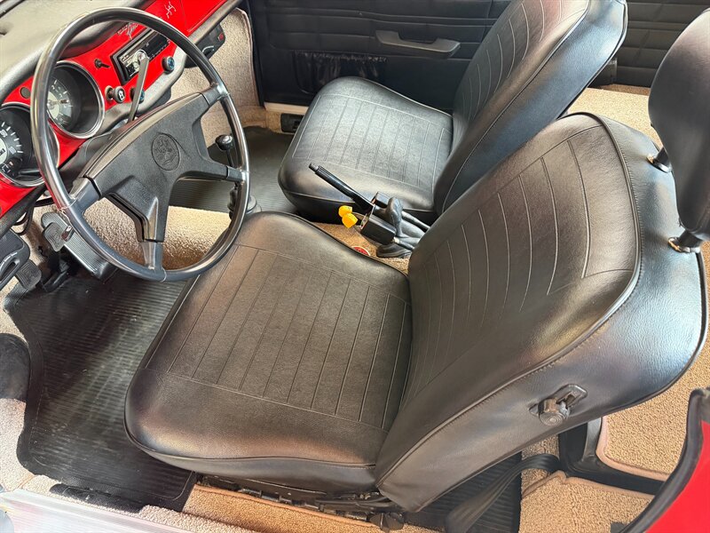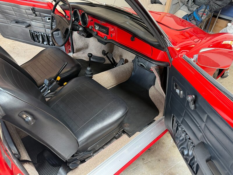 Inside, the black and creme interior provides a bold, classic contrast to the vibrant red exterior, giving the cabin a sporty yet refined feel. The Karmann Ghia's intimate cockpit is a wonderful place to experience vintage motoring, with its straightforward, driver-focused layout that reflects the honest simplicity of the era. Powered by Volkswagen's dependable air-cooled flat-four engine, this is a car that rewards enthusiasts who appreciate character and craftsmanship over raw horsepower. Whether you're a seasoned collector or a first-time classic car buyer, this 1973 Karmann Ghia is a rare opportunity to own a piece of automotive history.